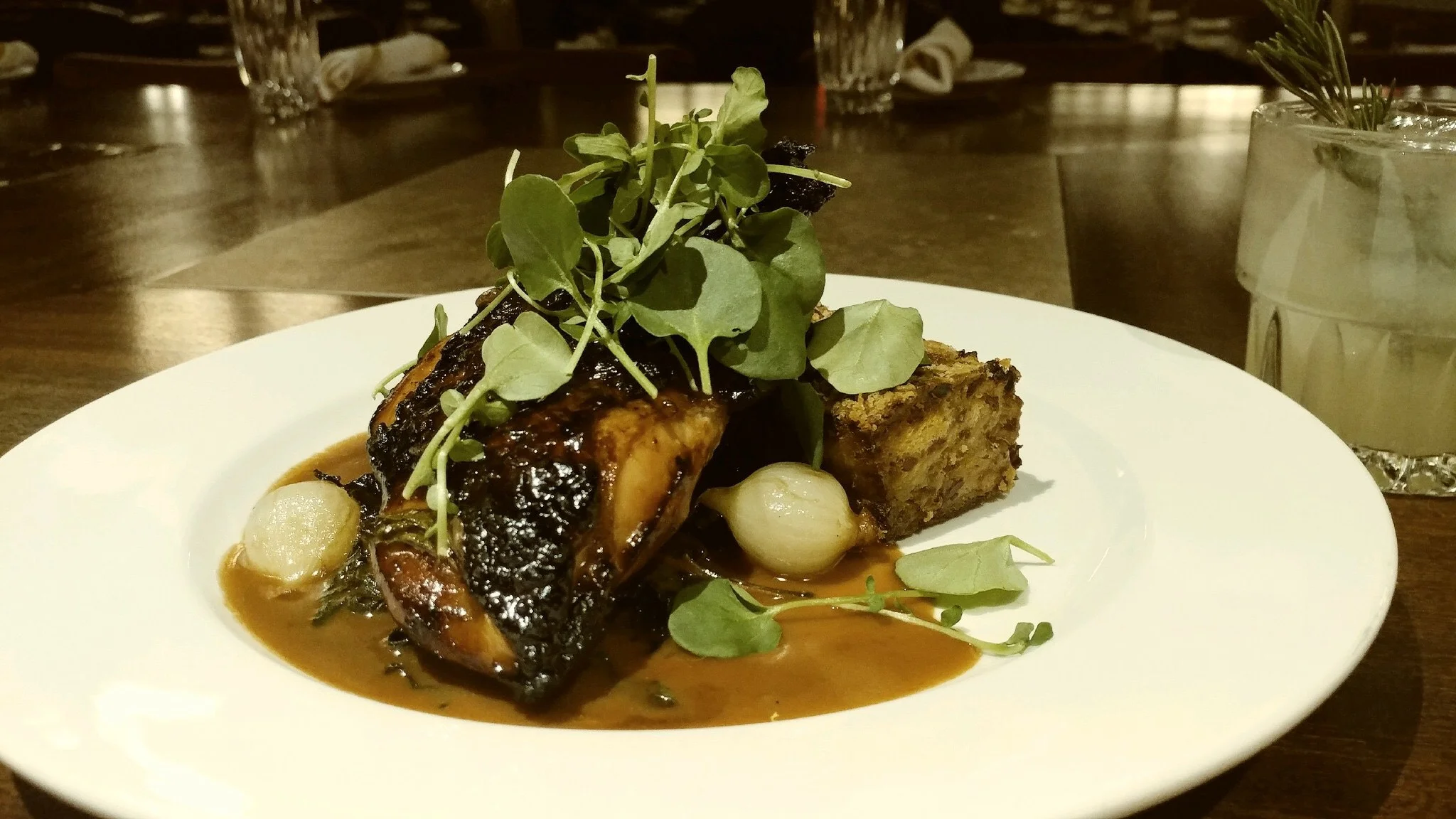 BBQ Pork Short Ribs - Baked Beans, Smoked Bacon, Braised Greens, Garlicky Scallion Jus